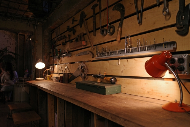 ガレージを広めに確保しておくと、横に作業台を取り付けることができます。