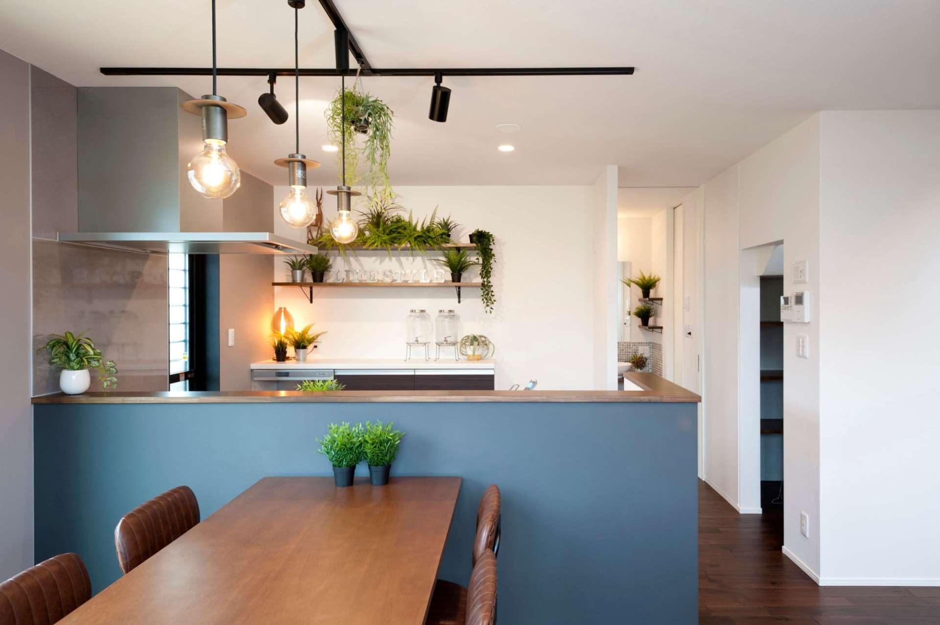 M様邸に一歩足を踏み入れると、まず目を奪われるのが高く設計された吹き抜け空間です。平屋では味わえない、垂直方向へのダイナミックな広がりが、住まいに贅沢なゆとりをもたらします。