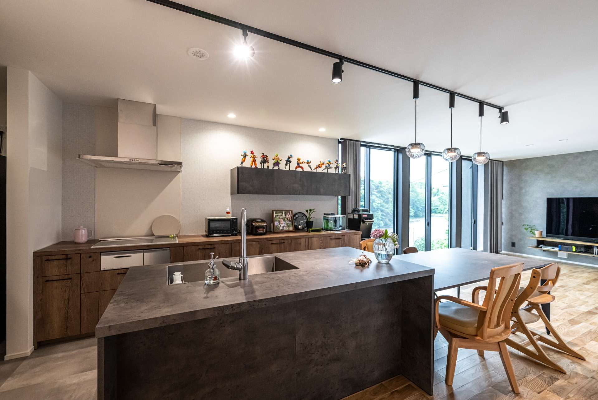 大開口の窓から広がる景色。家族が自然と集うリビング