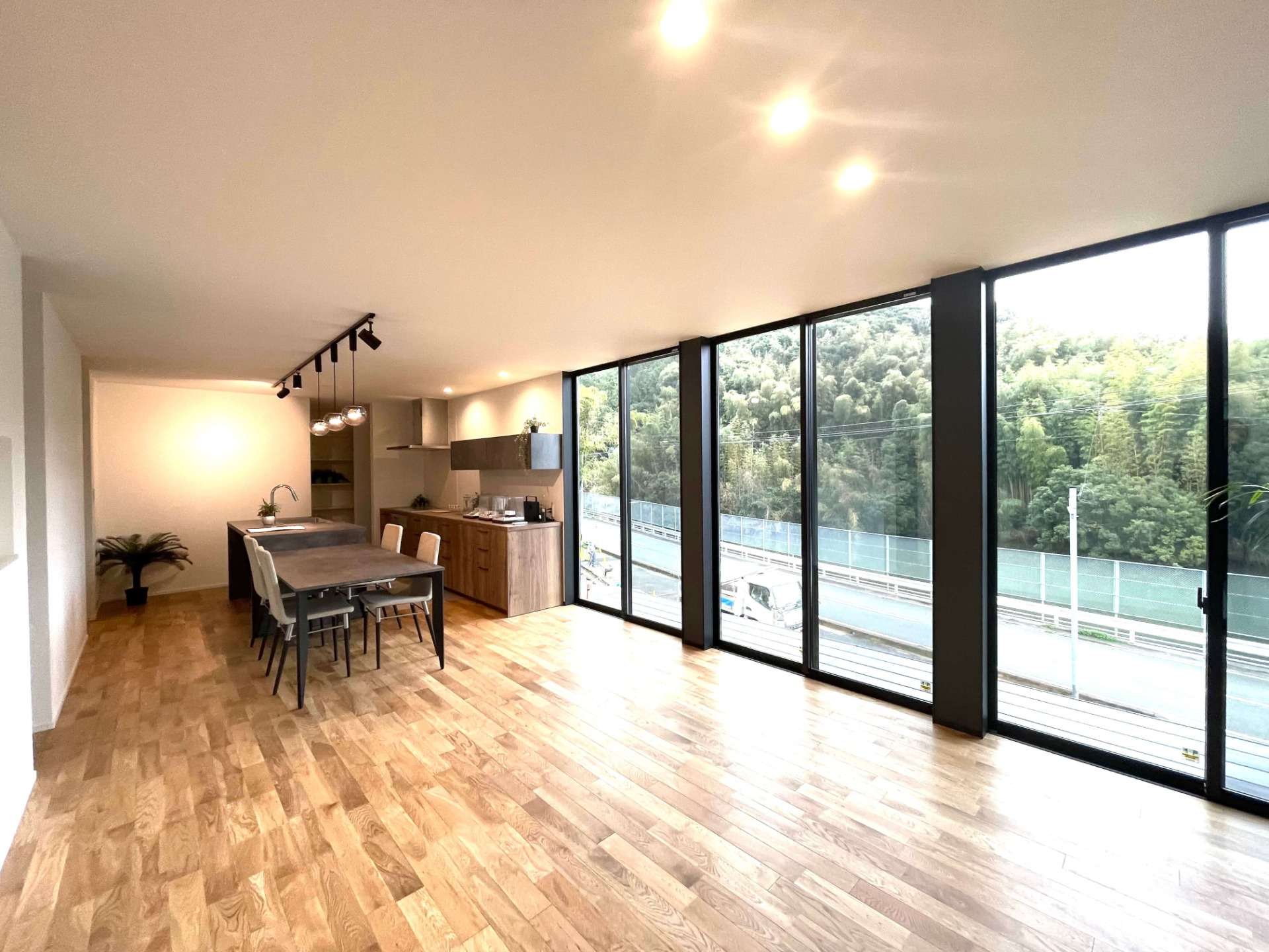 景色と家族が主役。開放感あふれるワンフロアの景色を見守る平屋