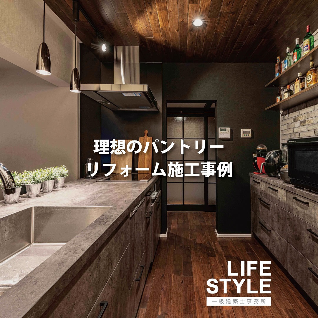 理想のパントリーリフォーム施行事例 理想のパントリーリフォーム施行事例こんにちは、ライフスタイル福岡です。パントリーの施行事例をご紹介。ライフスタイルでリノベーションされたI様のキッチン。キッチンの奥に進むと…天井まで続く大容…