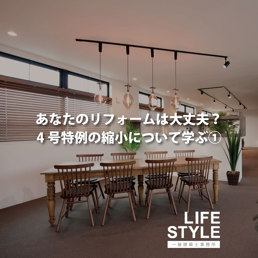 4号特例の縮小について学ぶ① 4号特例の縮小について学ぶ①こんにちは、ライフスタイル福岡です。2025年4月からの法改正により変わった、4号特例の縮小について。今までは戸建てのリフォームやリノベーションで必要がなかった確認申請…