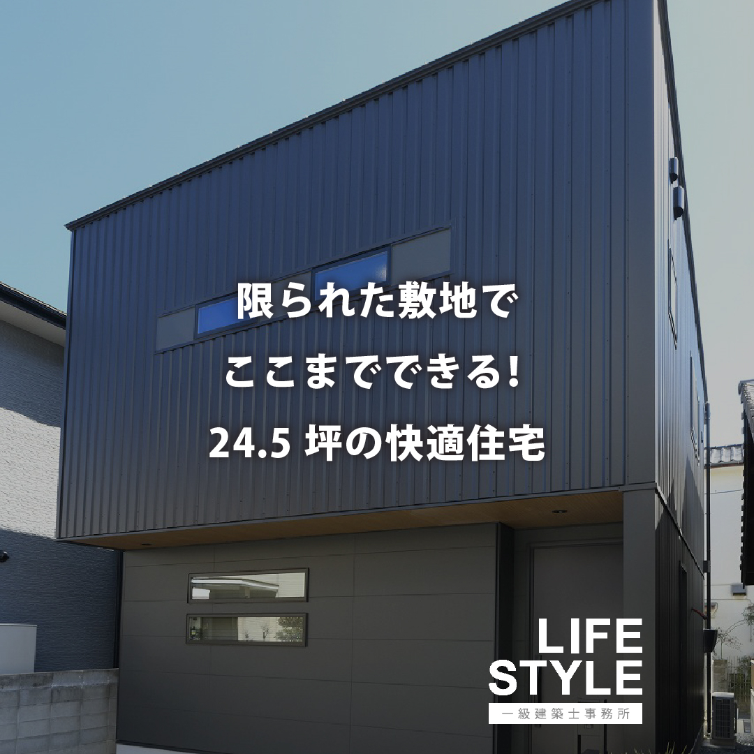 【糟屋郡の注文住宅】 【糟屋郡の注文住宅】24.5坪の敷地に描いた、魔法のような住まい。2台分の駐車スペースを確保しつつ、1階にLDK、2階に水回り&寝室+子ども部屋を配置。家全体をエアコン一台で快適に過ごせるよう、断熱…